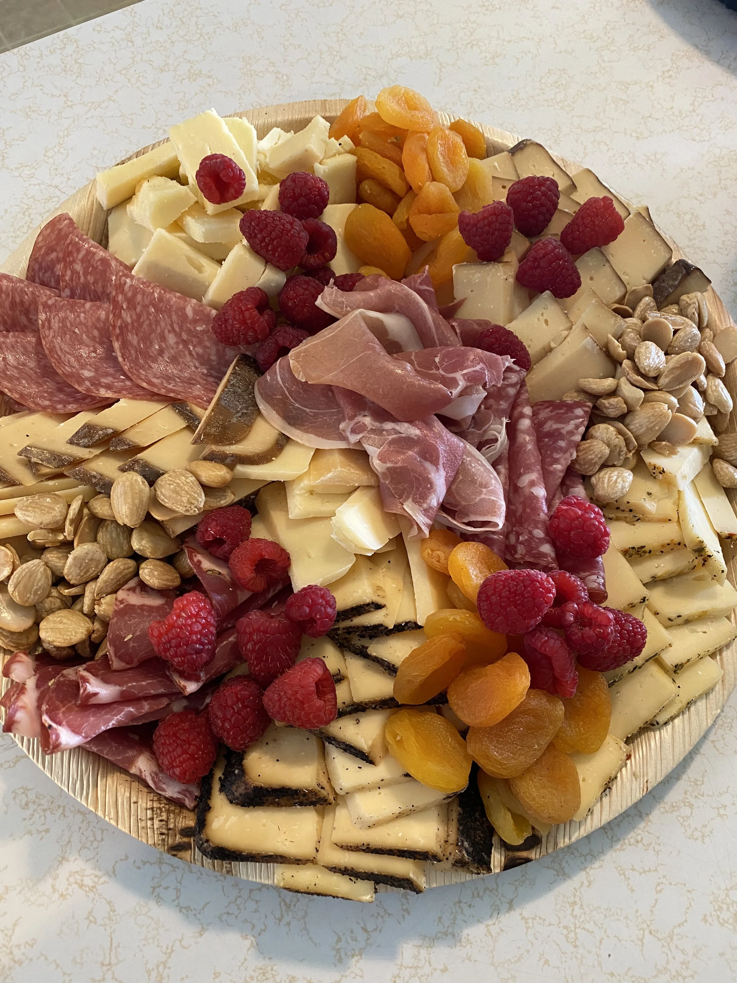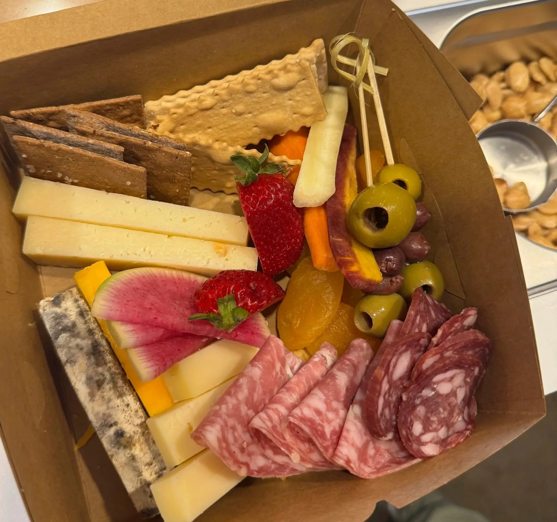 A curated selection of domestic and imported cheeses, including local Wisconsin cheesemakers. Paired with an assortment of artisanal crackers and accoutrements, including Marcona almonds, dried apricots, fresh berries, olives, cornichons, and a seasonal jam.